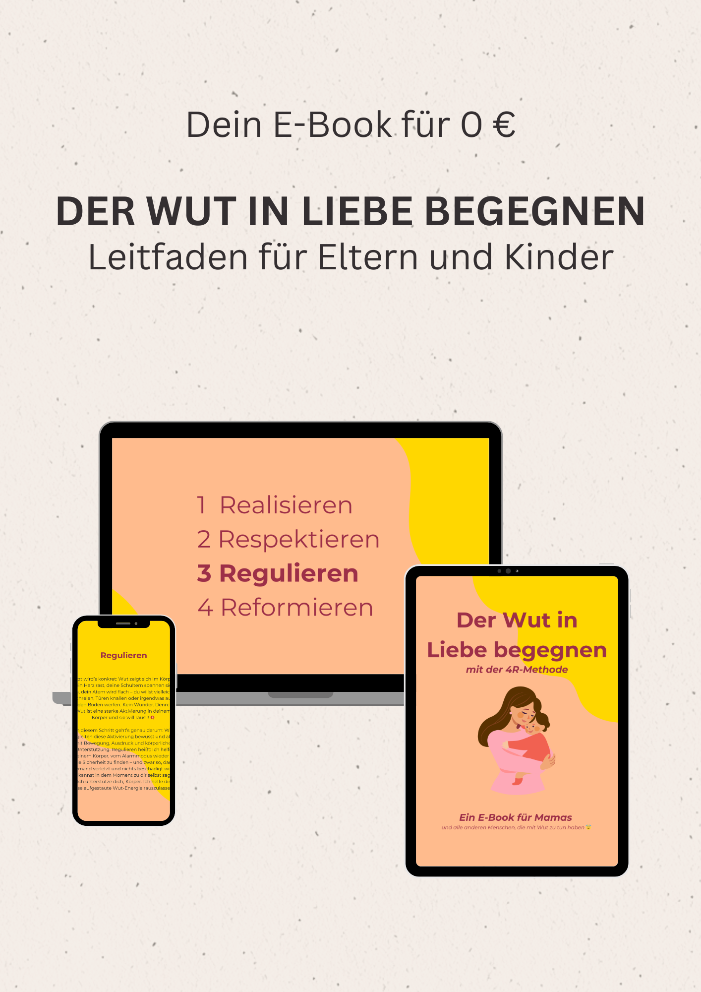 Wutausbrüche im Familienalltag können ganz schön herausfordernd sein. Dieses E-Book zeigt dir einen liebevollen und praktischen Weg, wie du dein Kind und dich selbst durch starke Gefühle begleiten kannst.